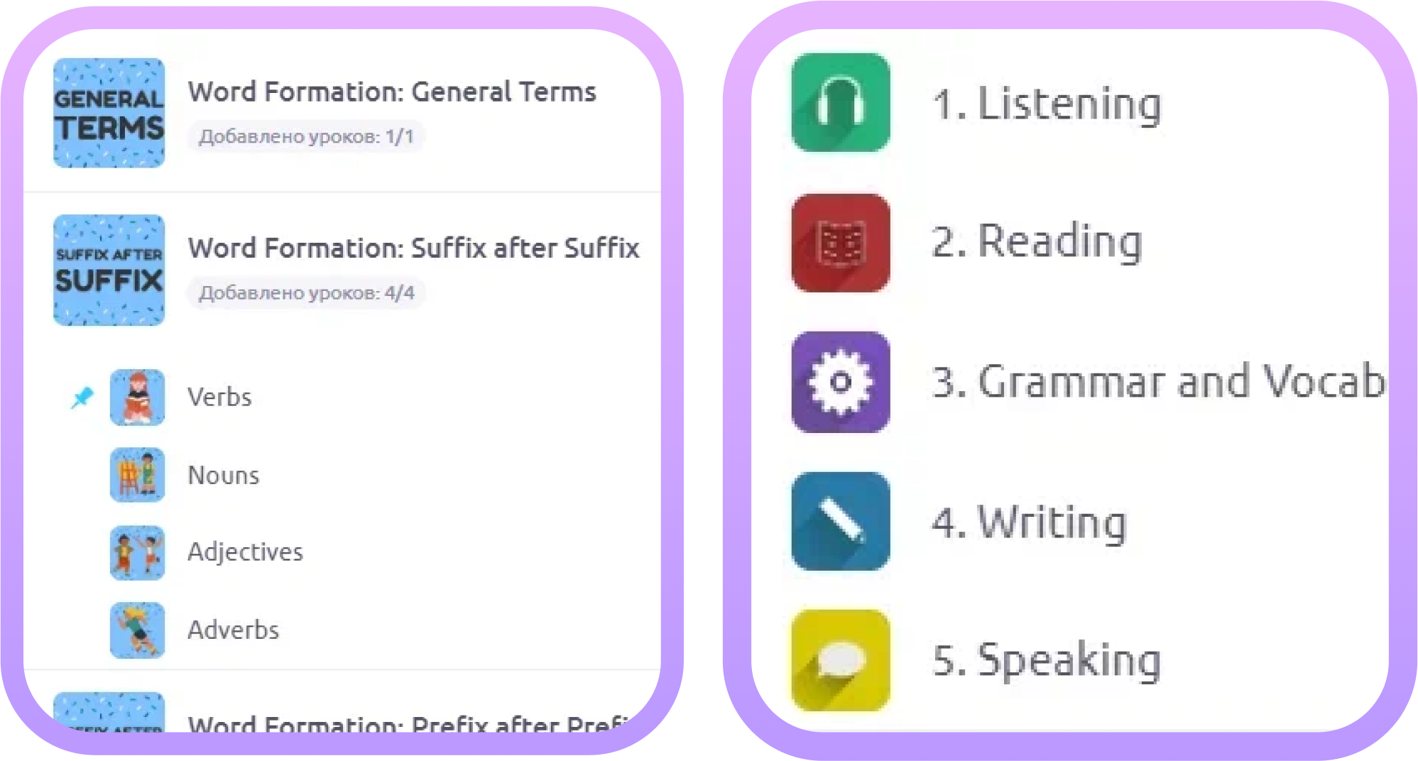 В виртуальном классе тебе будут доступны обучающие материалы, домашки и интерактивный словарик для эффективного запоминания новых слов